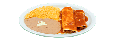 Chicken .. 16 Carnitas .. 16 Steak .. 19. Grilled strips of chicken, steak or carnitas rolled in a flour tortilla with white queso on top and rice and beans on the side.