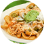 Chicken, Carnitas or Steak, white rice, sour cream, black beans, cheese, corn, avocado. tomato and onion. On the side mango sauce. Chicken or Carnitas 16, Steak or Shrimp. 18