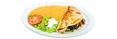Stuffed with spinach and mushrooms. Served with rice, lettuce, sour cream, tomato and guacamole.
